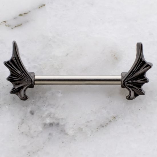 Description 14g 9/16" Externally threaded straight barbell with black bat wings.